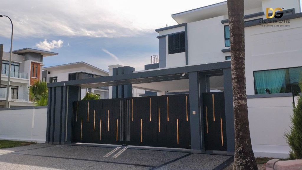 - Fully aluminium gates can be made in virtually any style — from minimalist slatted panels to intricate laser-cut patterns. You can also choose wood-grain textures for a natural look without the hassle of maintaining real wood.